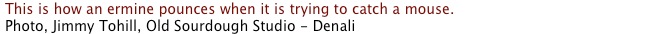 Further Reading: There are many great books on Alaskan wildlife. Some are books of photographs. Others contain detailed information. For a general overview of more common animals, we often turn to the excellent descriptions provided by the Alaska Department of Fish and Game in its "Wildlife Notebook Series" at this wildlife notebook link. The Alaska Department of Fish and Game has a great new website with many other resources including information on viewing, education and species as well as hunting and fishing information at this Alaska Fish and Game link.